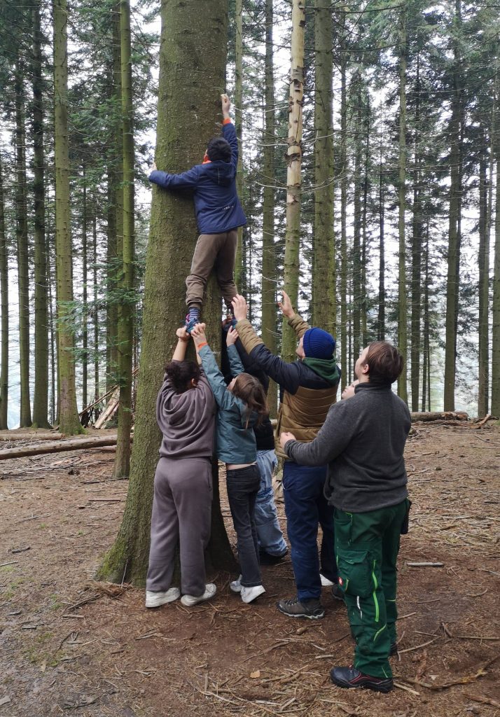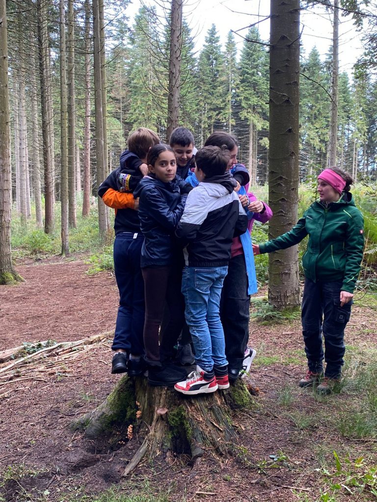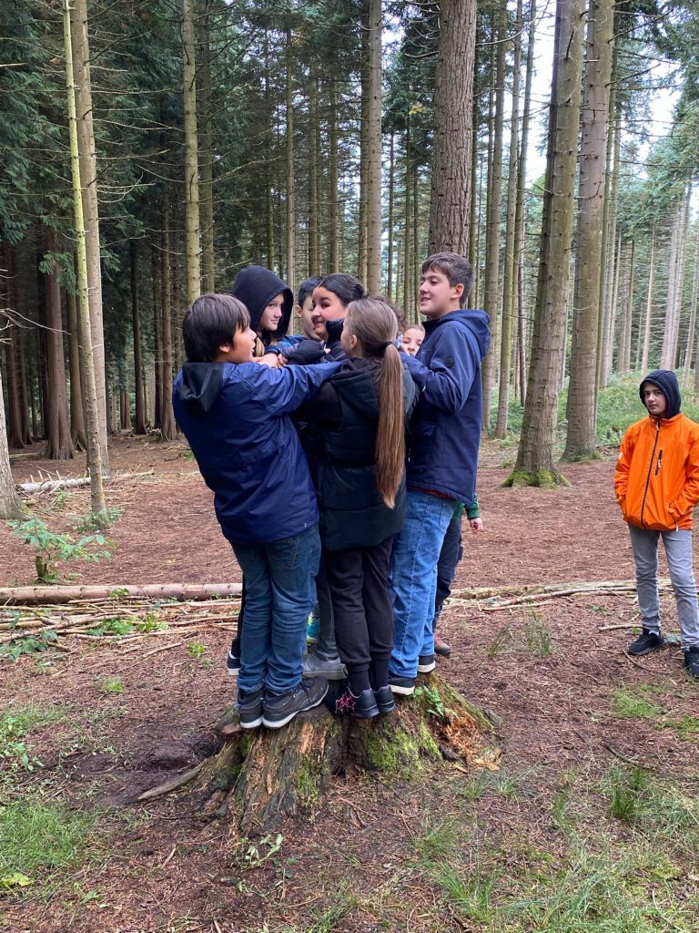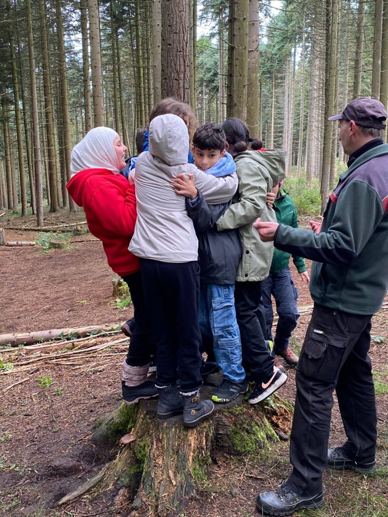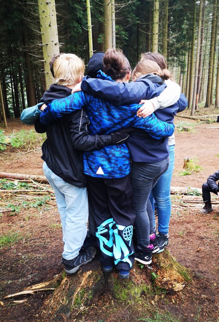 „Im Team raus in den Wald“ hieß es wie jedes Jahr wieder für die sechsten Klassen. Bei kleinen Teamspielen in der Natur erfuhren die Schülerinnen und Schüler gleichzeitig allerhand Wissenwertes zum Thema Wald. Vielen Dank an Dirk Wagenführ vom Waldpädagogischen Zentrum Burgholz, der diesen teamerlebnisorientierten Waldspaziergang angeleitet hat. Viele der Spiele wurden verknüpft mit den Gegebenheiten in der Natur, so dass neben dem Spaß und der Entwicklung der Teamfähigkeit in der Klasse auch die Kenntnisse zum Thema Wald erweitert wurden.