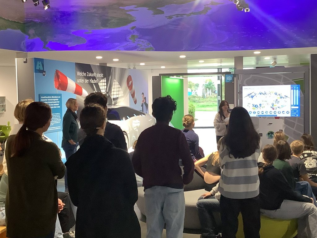 Am zweiten Tag unseres Aufenthalts sind wir morgens zur Klima-Arena Sinsheim gefahren. Dort haben wir viele spannende Aufgaben rund um das Thema Klimakrise, Klima- und Umweltschutz bearbeitet. Wir wurden in Gruppen eingeteilt und sollten in begrenzter Zeit verschiedene Aufgaben gemeinsam lösen. Pro richtig gelöster Aufgabe gab es Punkte, und die Gruppe mit den meisten Punkten hat am Ende einen kleinen Preis gewonnen. Wir haben gelernt, wie das Klima funktioniert, was den Klimawandel verursacht und wie Menschen, Tiere und die Natur dadurch beeinflusst werden. In der Klima-Arena gab es viele interaktive Stationen, an denen wir selbst Dinge ausprobieren und untersuchen konnten.