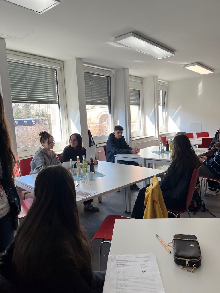 Die Schülerinnen und Schüler unseres Lateinkurses in Klasse 10 waren zu Gast in der Klassischen Philologie der Bergischen Universität Wuppertal. Die Doktoranden der Fakultät berichteten über ihre Projekte und gaben uns einen interessanten Einblick in die Arbeit eines Lateinstudierenden. Es ging vor allem um die Kommentierung und Edition verschiedenster Werke lateinischer Autoren von Bibelepen bis zu Schulordnungen, die in lateinischer Sprache für die früheren Schülergenerationen verfasst worden waren.